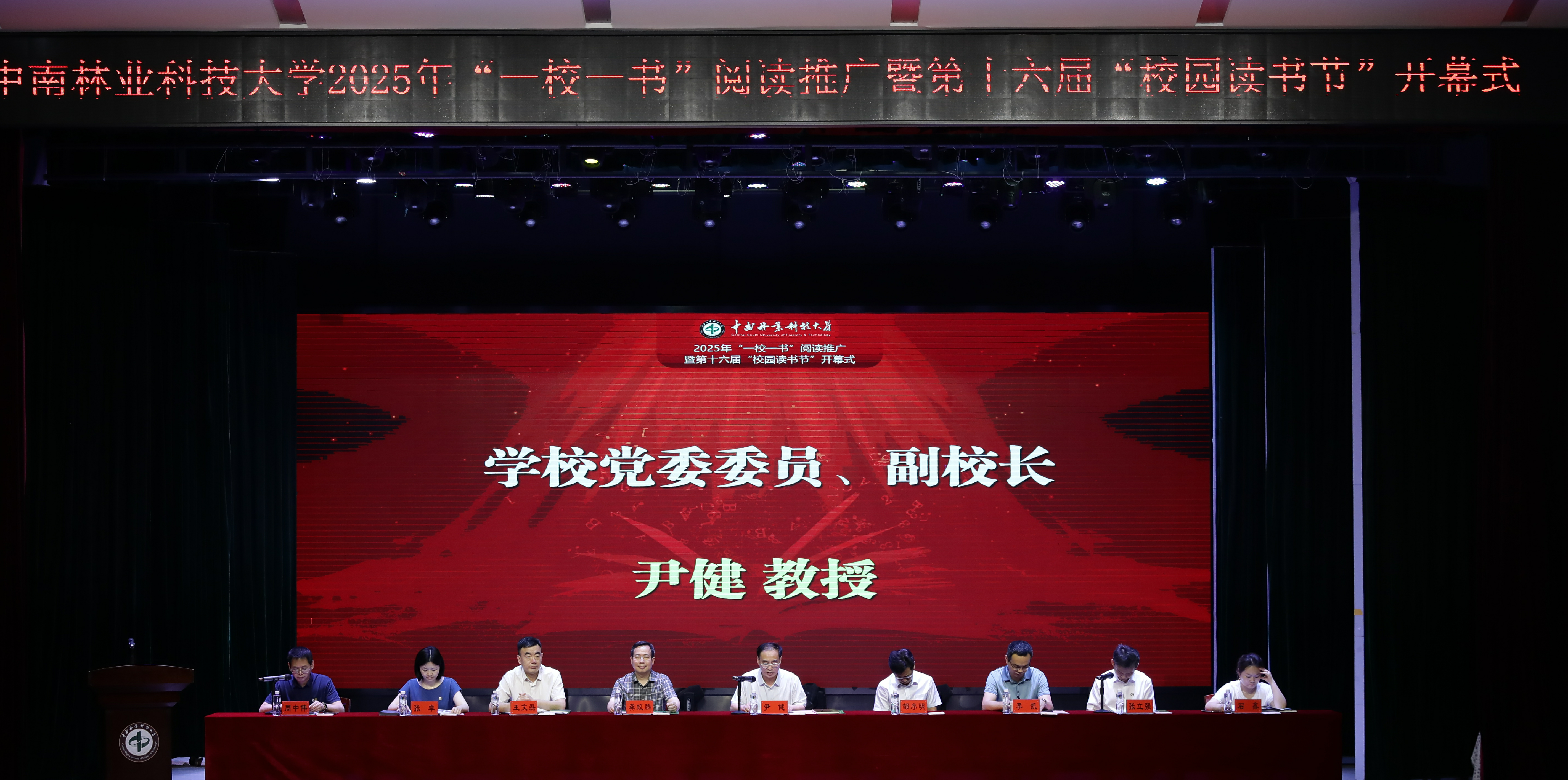 5月9日下午,学校在雅韵堂举行中南林业科技大学2025年“一校一书”阅读推广暨第十六届“校园读书节”开幕式。会议邀请到了湖南省图书馆学会理事长、湖南图书馆党委副书记、副馆长邹序明,湖南省图书馆学会副理事长、湖南省高等学校图书情报工作委员会秘书长、湘潭大学图书馆馆长龚蛟腾,校党委委员、副校长尹健出席会议并讲话,相关部门职能部门负责人、师生代表400余人参加会议,湖南日报、潇湘晨报同步报道。会议由图书馆副馆长周中伟主持。