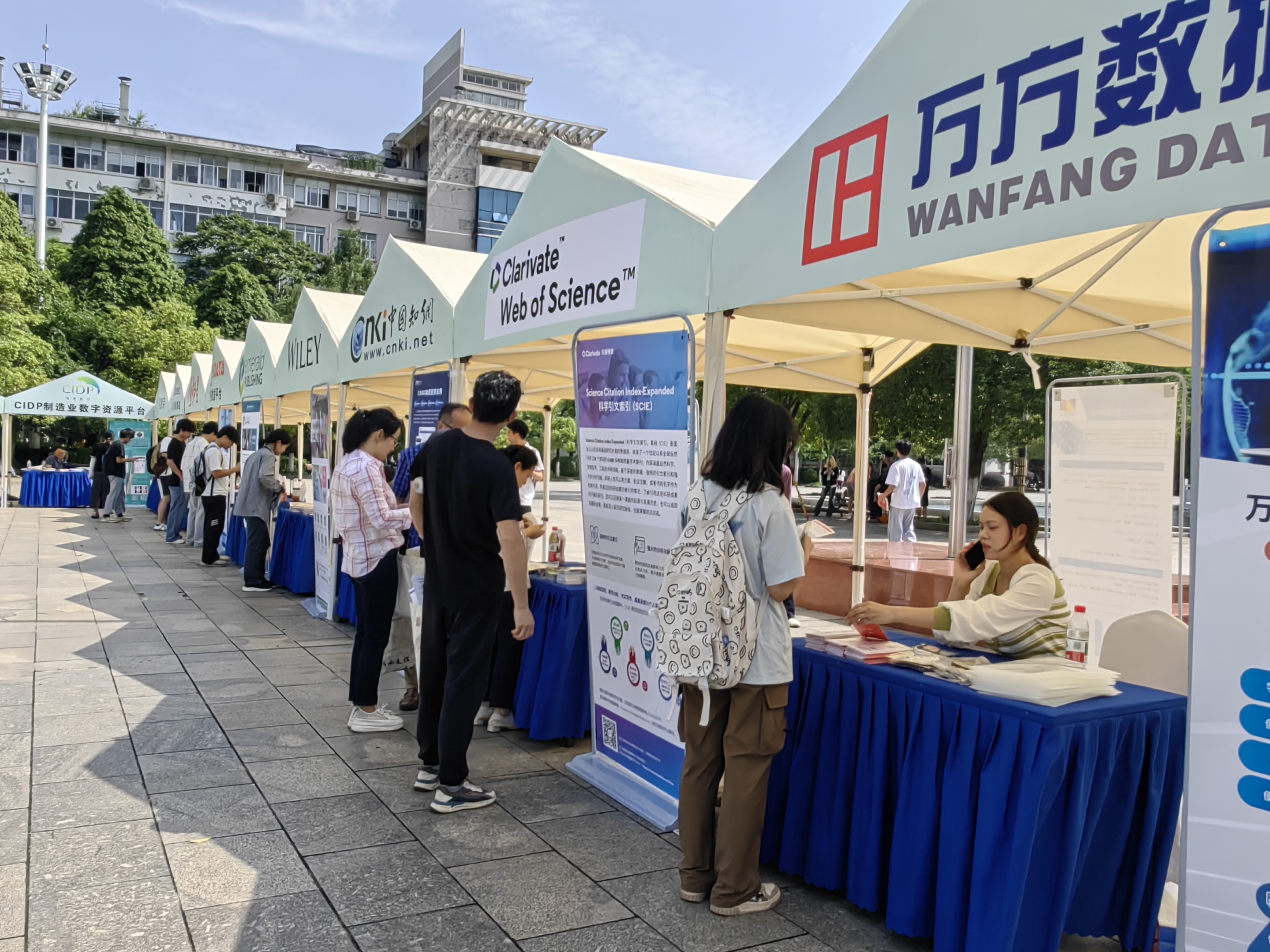 活动当天,在图书馆东馆前坪还举行了数图资源游园展。设置多个展区,展示学术数据库、电子书平台及科研工具,吸引师生体验“指尖阅读”,让学生随时随地获取学术资源,助力科研创新。