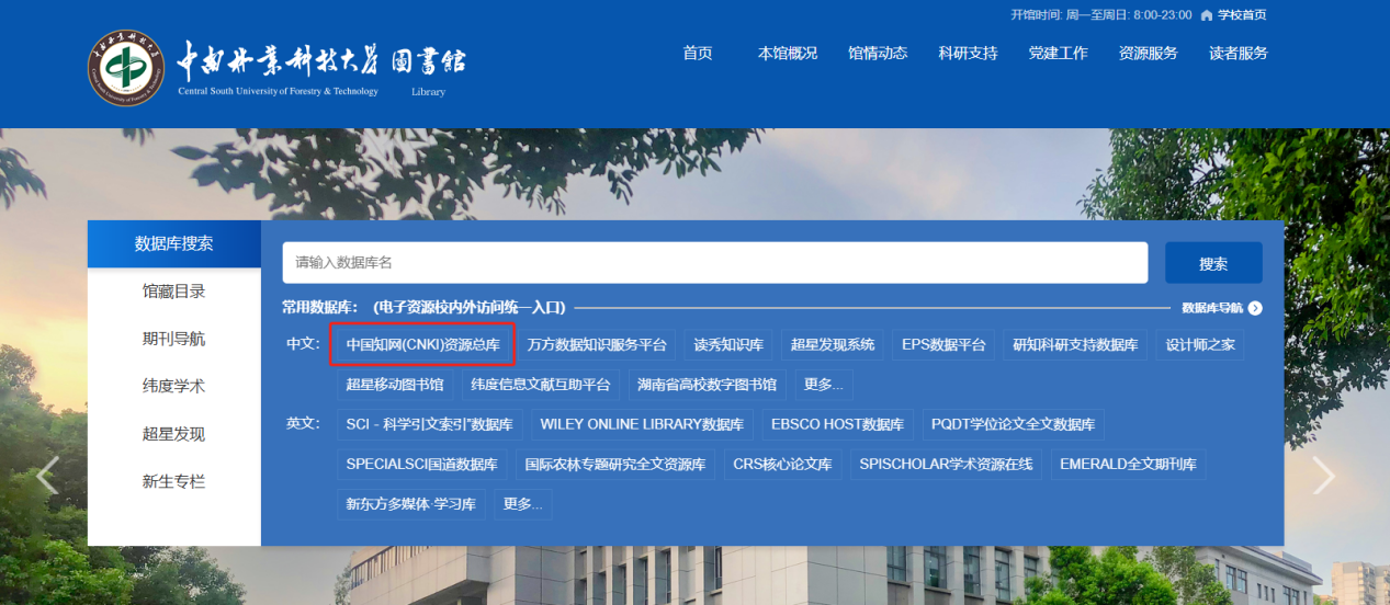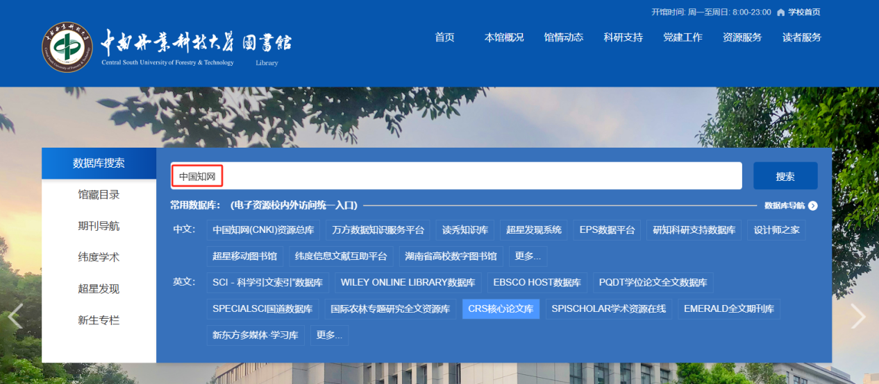 2.点击首页展示的常用数据库名称(如“中国知网”);