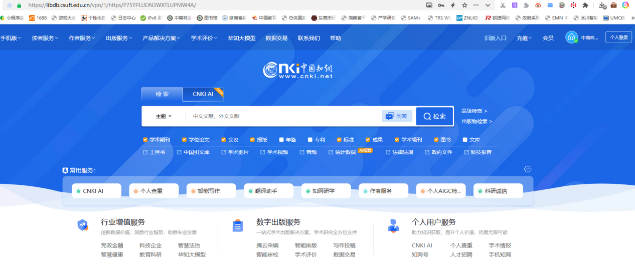 1.登录图书馆主页(https://https-library-csuft-edu-cn-443.webvpn.csuft.edu.cn);