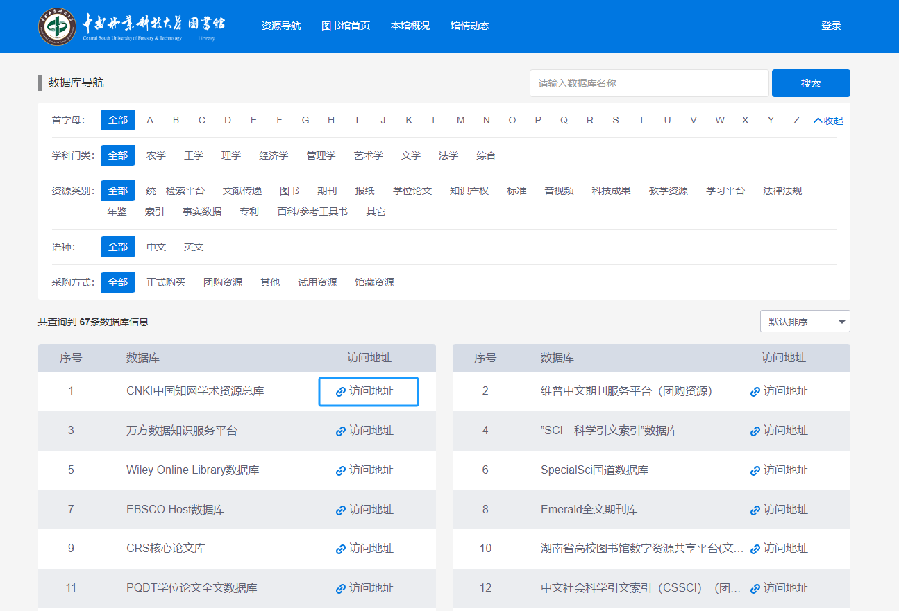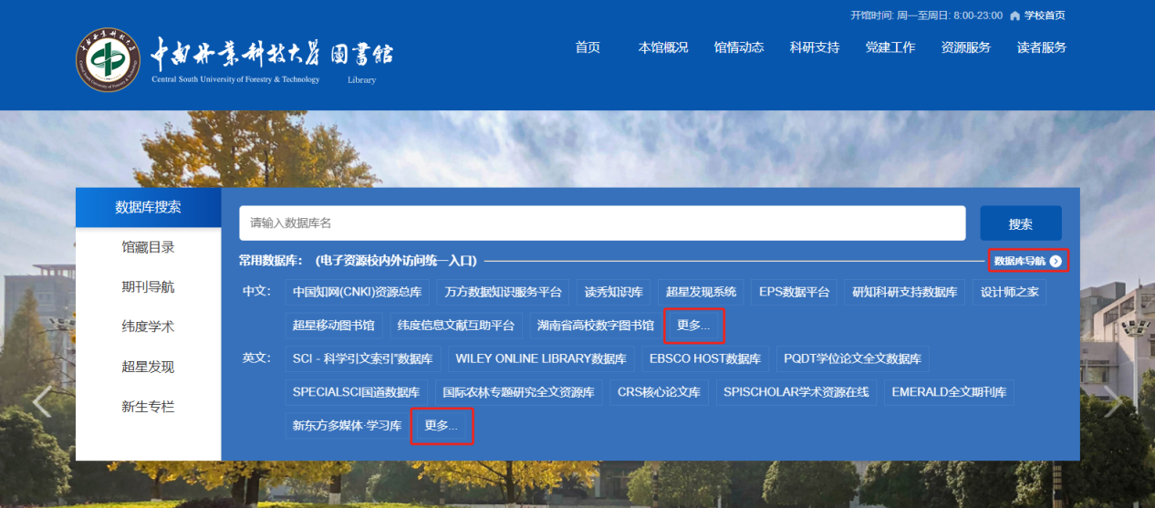 2.点击首页“数据库导航”或者“更多”进入数据库列表页;